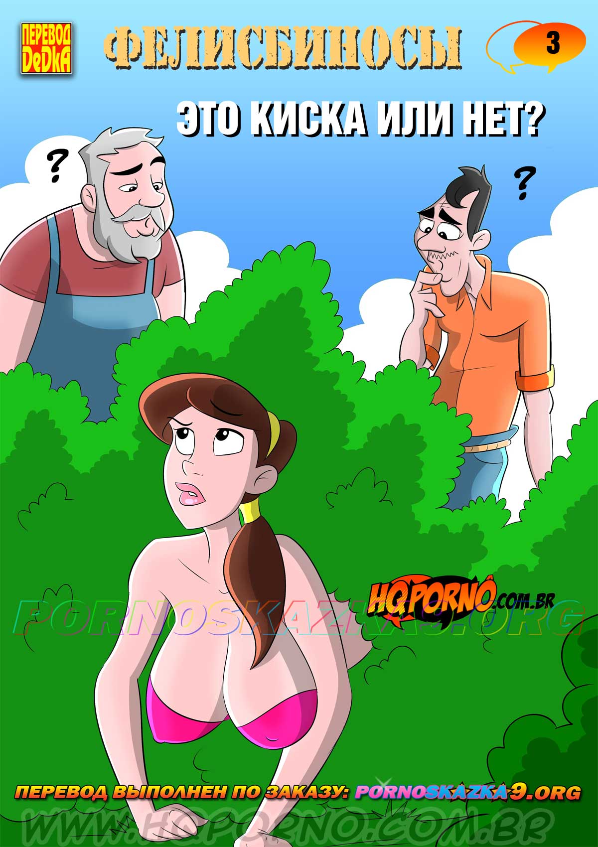 Порно комикс «Фелисбиносы. Часть 3. Это киска или нет?» Сеньор Фелисбинос и его работник, Нерсо, шли на рыбалку и увидели торчащую из...